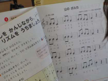 山のポルカでは、拍子を感じながらリズム打ちをしました。