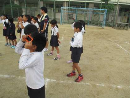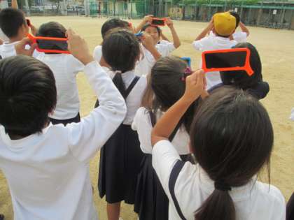 今日は、遮光板をつかって、太陽を観察しました。