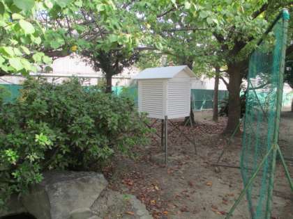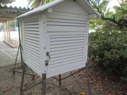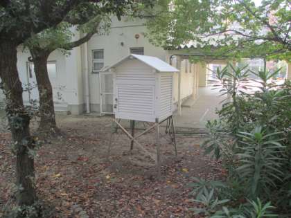 講堂と新館の間に、ひっそりと百葉箱があります。