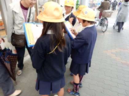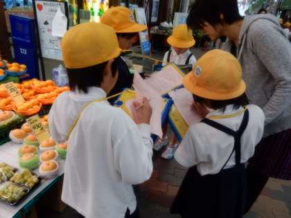今日の2,3時間目に3年生は中央商店街へ社会科見学に行きました。お店の人とお客さんにインタビューをしていました。インタビューするのはとても緊張するようで、最初は声が小さく恥ずかしがっていましたが、だんだんと慣れてきてきちんとインタビューすることが出来ていました。