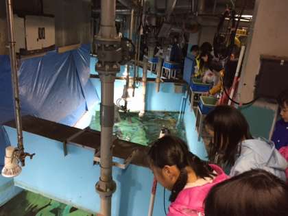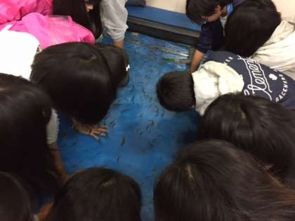 宿舎から歩いてマリンランドへ。ペンギンにさわったり、様々な魚を観察したりしました。