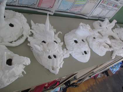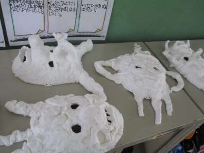 昨日作ったお面の第一段階終了です。