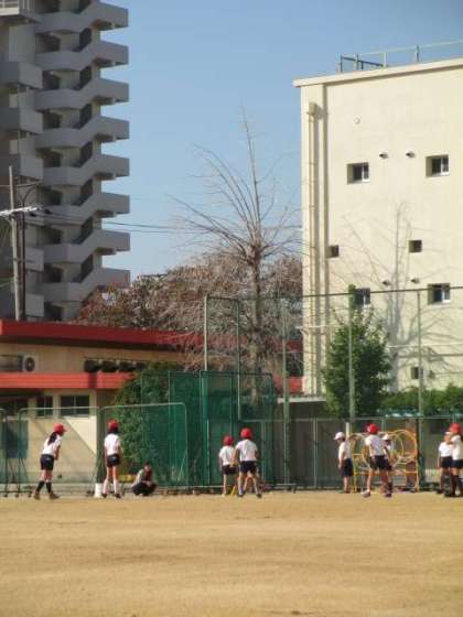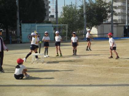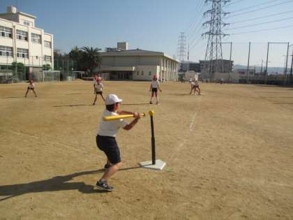 運動場で野球をしました。