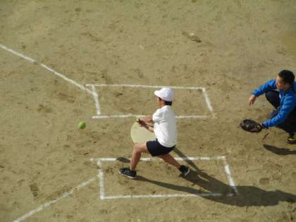 投げたボールを打つのが苦手な人は、静止したボールを打ちます。