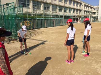 本日、2・3時間目に地域の方々に来ていただき、グランドゴルフをおこないました。天候にも恵まれ、ぽかぽか陽気のなか子ども達の笑顔や歓声があふれていました。全8ホールをまわり最高スコアは22でした。地域の方々、本当にありがとうございました。