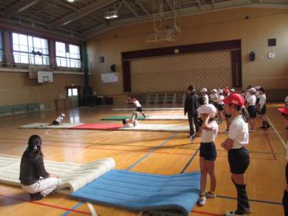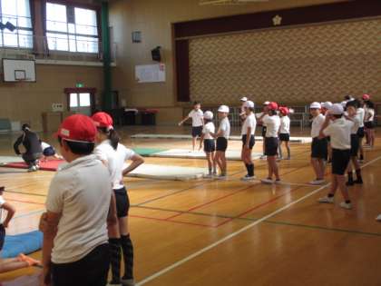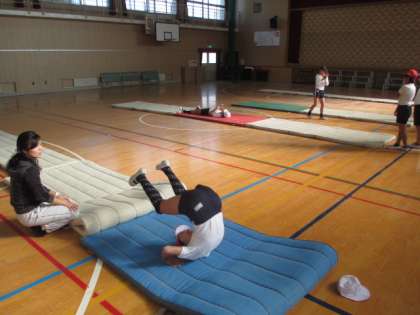特に、後転は前転以上に掌をしっかりとマットにつける必要があります。