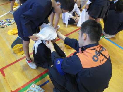 防災訓練 5・6年 三角巾