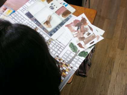イメージ通り色ができずに、いろいろな色を組み合わせてながら、混色に時間をかけている子もいます。