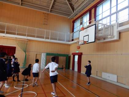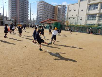 今日は2時間目終わりの休憩時間と、給食終わりの休憩時間に東小ランドという活動を行いました。運動場と体育館に色々な種目を用意しました。写真は児童たちの様子です。