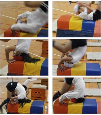 しっかりと両手をついて、踏み切る必要があります。