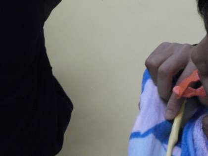 歯についてのお話を聞いた後、フッ化物を塗布しました。