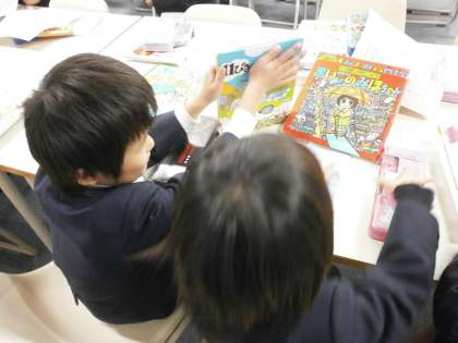 図書室で本を読んでいます。