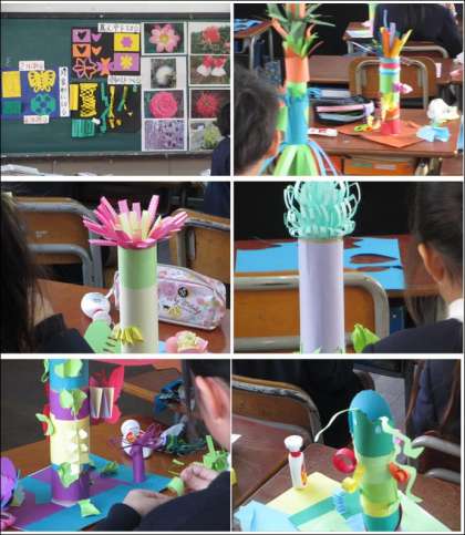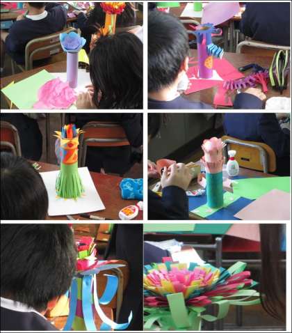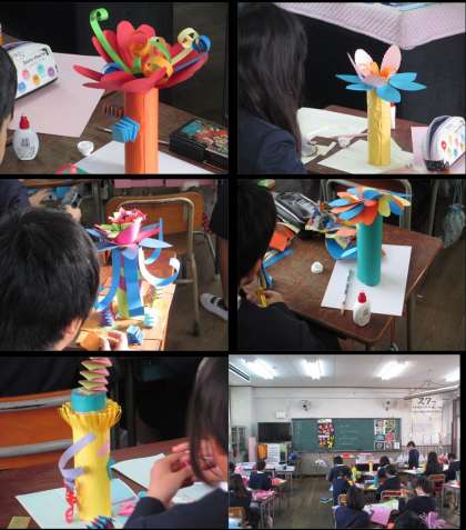 画用紙を切り抜き、いろいろな技法を使って花びらを作っていきます。