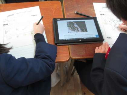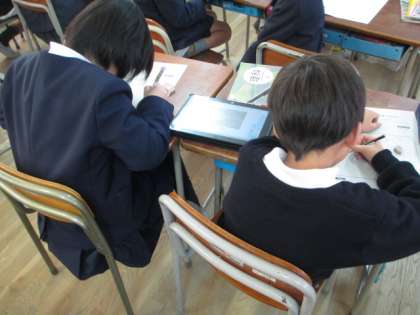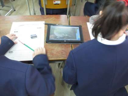 この時間は、タブレットを使って、冬の生き物について調べました。