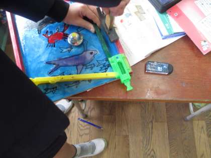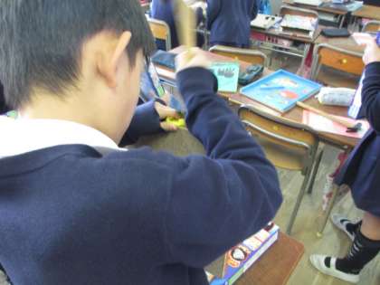 ビー玉がうまく回るように、残りの部品をつけたり、くぎの場所を工夫したりして、完成します。