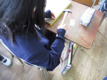 金槌で打っていくと、まっすぐに打つことができず、くぎ抜きで抜くことになるともっと大変になります。