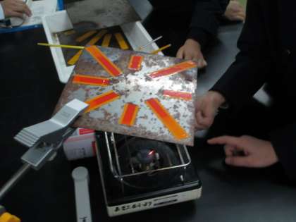 示温テープは、一定の温度になれば、色が変わっていきます。