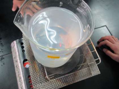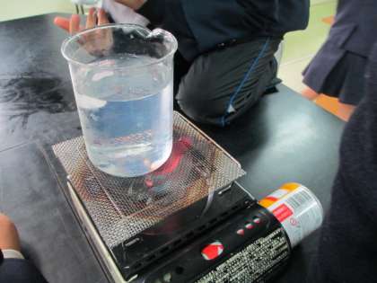 ビーカーの中の水を温めると、どのような順序で全体が暖かくなるかを実験しました。