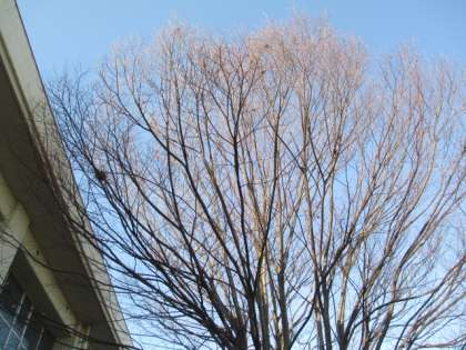 欅の木の葉はありませんが、枝には、芽が春を待っています。