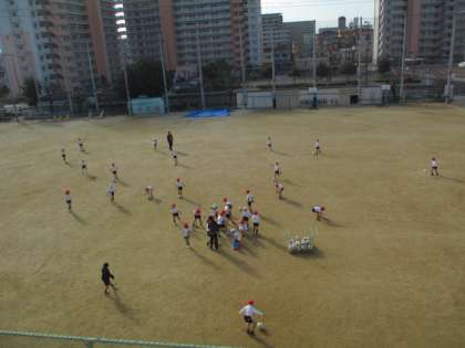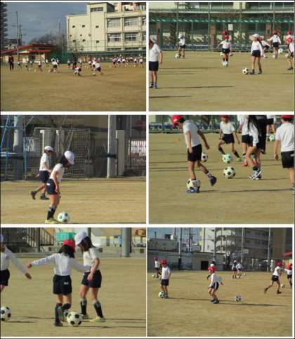 ボールをけったり、パスしたり、ドリブルしたり、個人技の学習をしました。