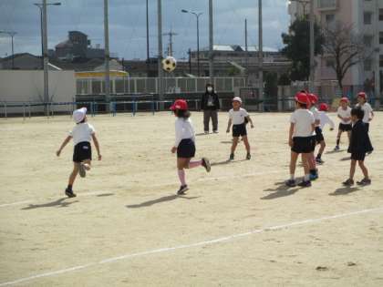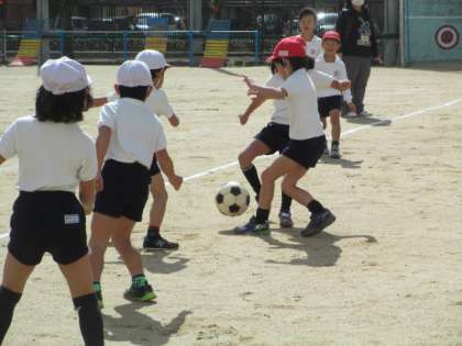 今日は、一気に気温も下がり、肌寒さも感じる一日になりましたが、1年生のみなさんは元気よく、運動場でサッカーをしています。