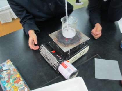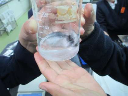 水溶液の実験をしています。