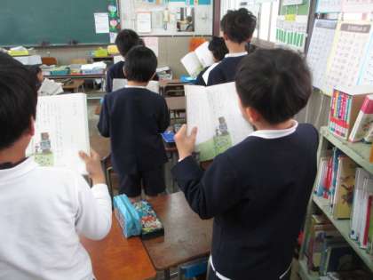 班ごとに音読しました。