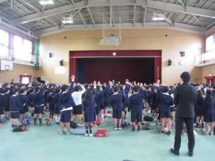 昨年できた校歌を斉唱した後、校長先生のお話がありました。