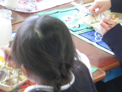 1年生の皆さんの中には、お代りをする人もいます。