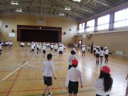 体育館でドッジボールをしました。