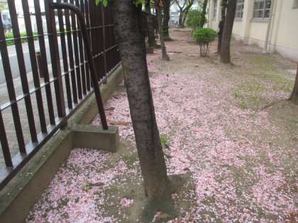 週末の雨や風の影響で、桜の花びらもとうとう散ってしまいました。