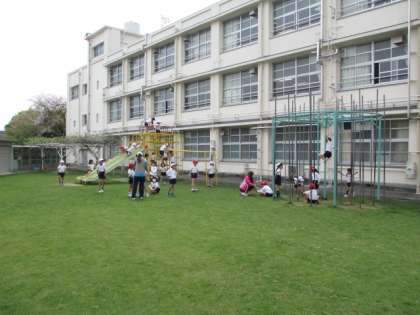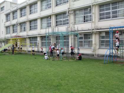 日差しのある暖かい芝生の上で元気いっぱいの2年生でした。