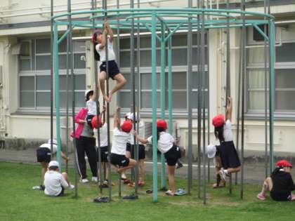 遊具を使うと、日ごろ使わない筋肉も使うようになります。