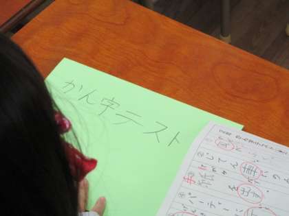 自分の漢字テストを自分でしっかりと閉じていきます。