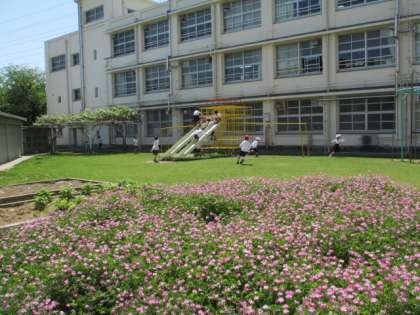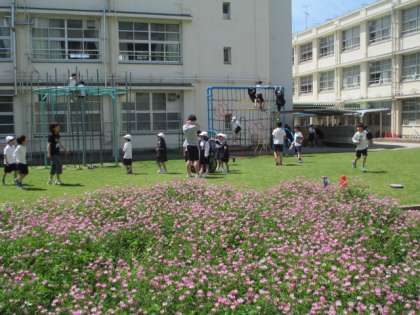 子どもたちはその前で元気よく遊んでいます。
