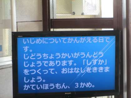 一人一人がいじめについて考えることができるよう、児童朝会では、校長先生のお話もありました。