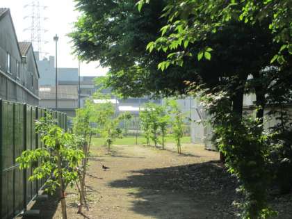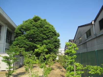 朝から強い光を受けて、講堂北側の木々も葉が茂ってきました。