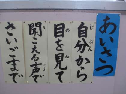 昨日の児童朝会で校長先生が朝会台で掲示されたものを職員室前に貼ってあります。あいさつで、いつも意識してほしいこと、4つ。何より大切なのは、あいさつはコミュニケーションの基本ですから、こころを伝えてほしいのです。