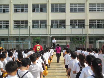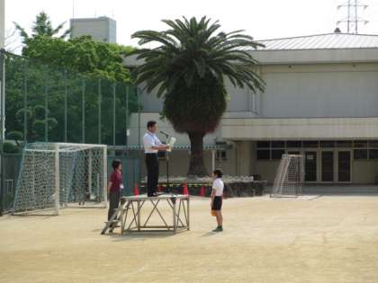 朝方の涼しい風もなくなり、朝会時には、気温も相当上がりました。