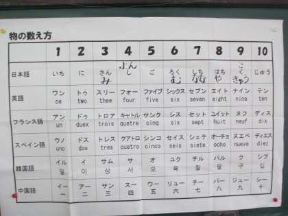 英語だけではなく、ほかの国の言葉でも数の数え方を学習しました。
