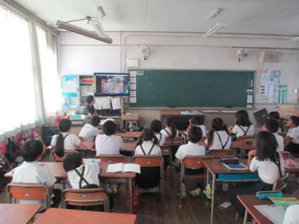 平野焼却工場や環境局からお越ししていただいた方からの出前授業(ごみの分別)で家庭から出たごみについては十分に学習しました。ビデオを見て、学習した事柄の確認をします。