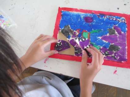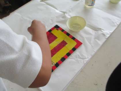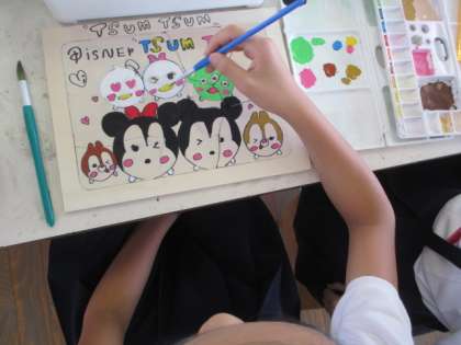 ボタンを入れると動き出す電動のこぎりの作業も終わり、あとは、彩色するだけとなりました。彩色が終われば、ニスを塗って完成。