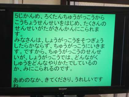 今日は、中学校の先生が、長吉東小学校の学習の様子を見学にいらっしゃいます。