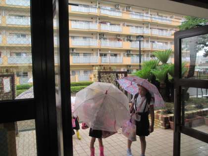玄関前で、傘の雫を落とすのがちょっと大変。