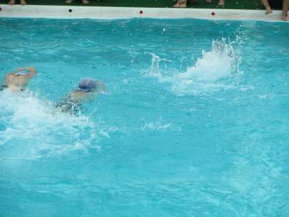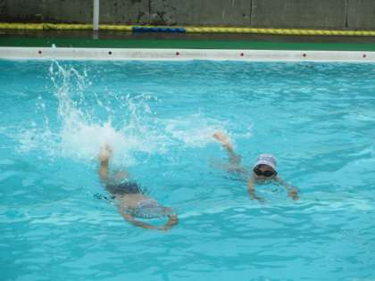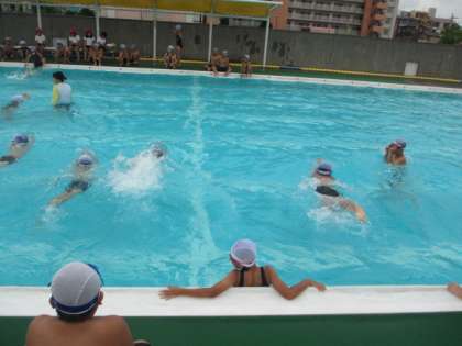 微妙な天気の中、4年生は、プール水泳をしました。入水するまでは、雨もやみましたが、その状態が学習中ずっとは続きませんでした。それでも、しっかりプール水泳の学習をすることができました。