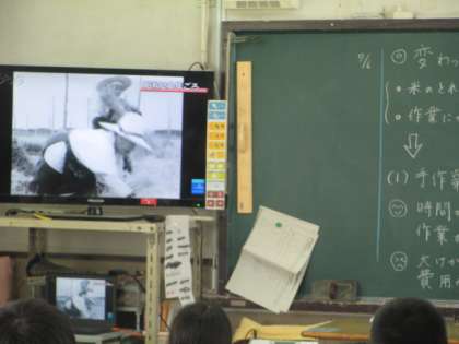 ビデオで、50年以上前のコメ作りの様子を見ました。