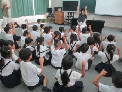 いろいろな動物の物まねを入れたもので、2年生のみなさんも大喜び。