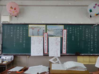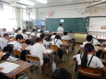 今日は5年2組で校内授業研究がありました。たくさんの先生が教室で授業を見ている中、子どもたちは緊張しながらも自分の意見を堂々と発表していました。