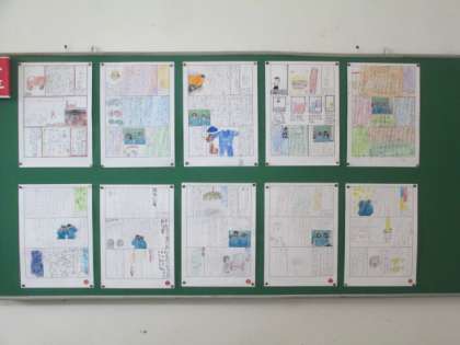焼却工場の学習で作った新聞を掲示しました。 ひとりひとり、ごみのことをよく考えるようになりました。