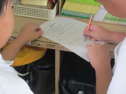 林間学習での最大の取り組みの一つが、キャンプファイヤーです。それぞれの班で出し物を考え、練習しています。また、キャンプファイヤー係では、いろいろな計画を考えています。きっと素敵な林間学習になるでしょう。